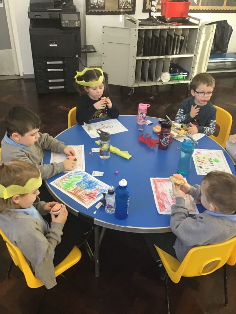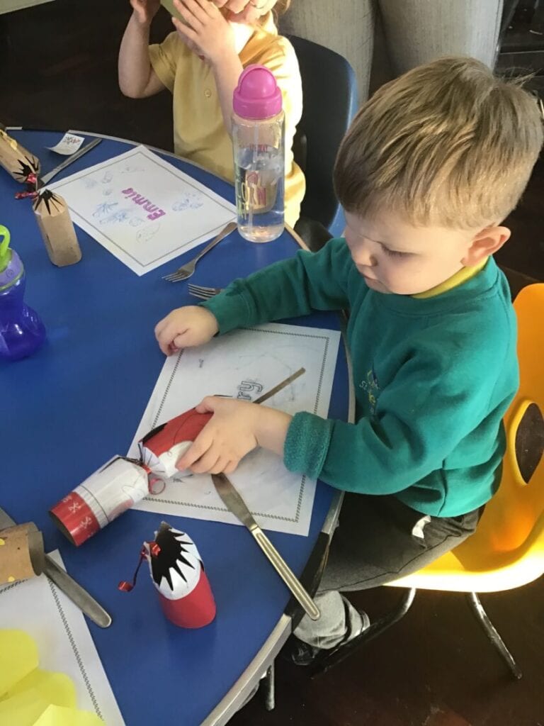 Their gingerbread men had problems, they couldn’t get over the river. The children set to work making a boat.