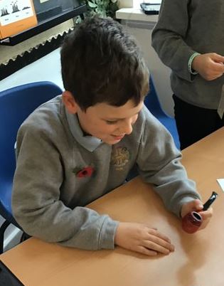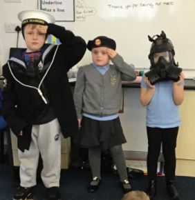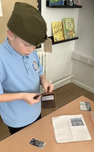 After looking at the resources it inspired the children to create pieces of artwork and poems to say thank you to the soldiers who fought for our freedom. They even got to try on some of the kit that the Royal Navy wear today.