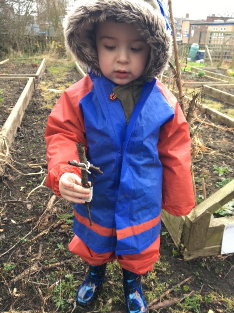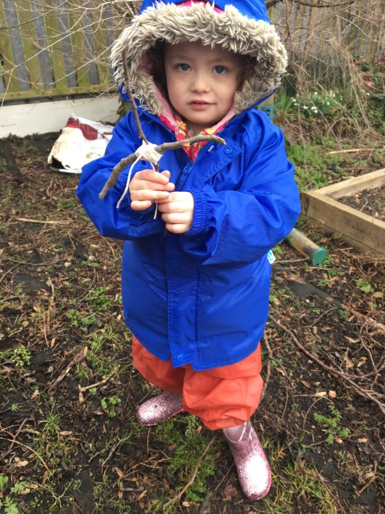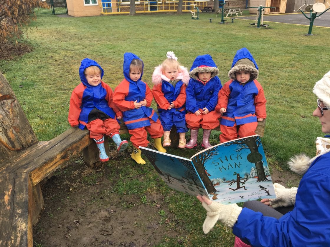 As part of forest school activities, our 2 year olds have been reading the wonderful book “Stick Man” by Julia Robertson. This then inspired them to look for sticks and make their own stick men.