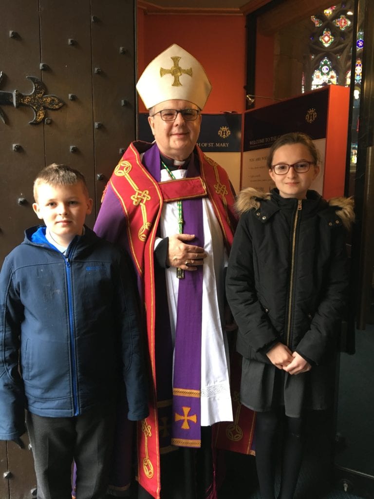 Children from St. Mary the Virgin council were very lucky to meet our new Bishop, Robert Byrne at a special welcoming mass at St Mary’s Cathedral in Newcastle. It was a wonderful Mass which was attended by children from all of the schools in the Diocese. After the service the children were able to have their photographs taken with the Bishop.