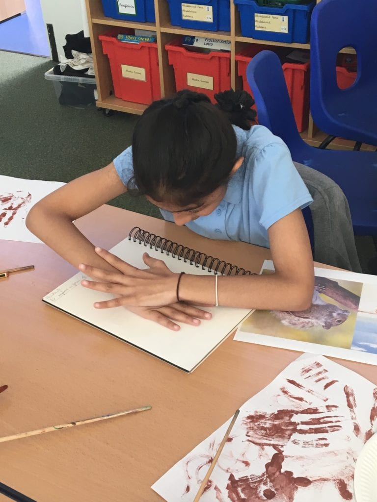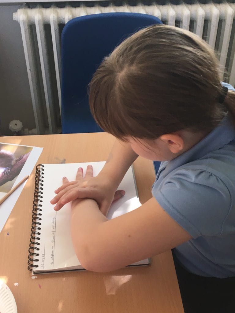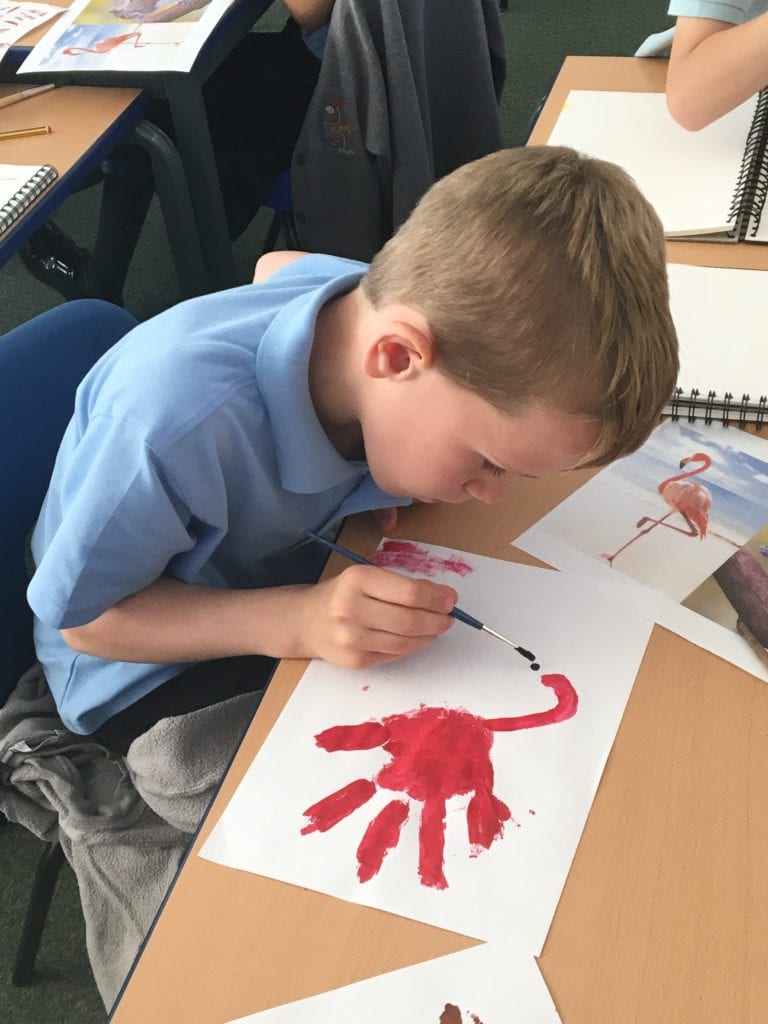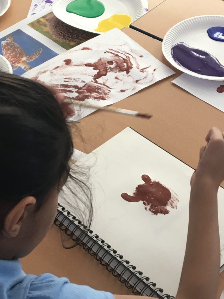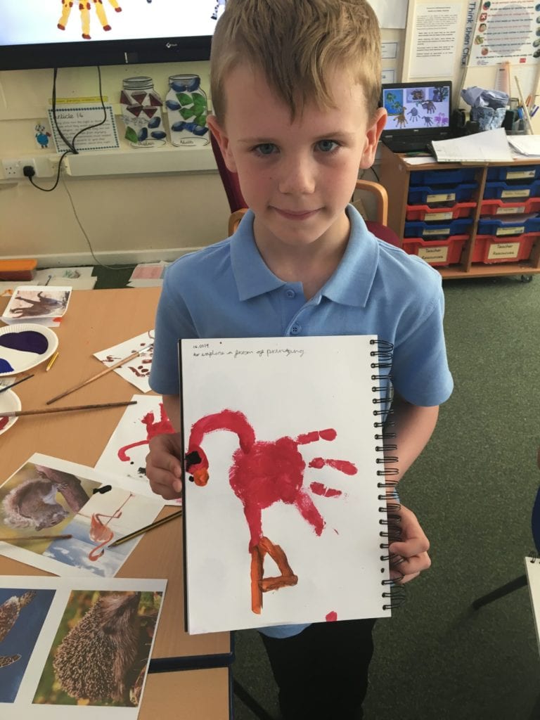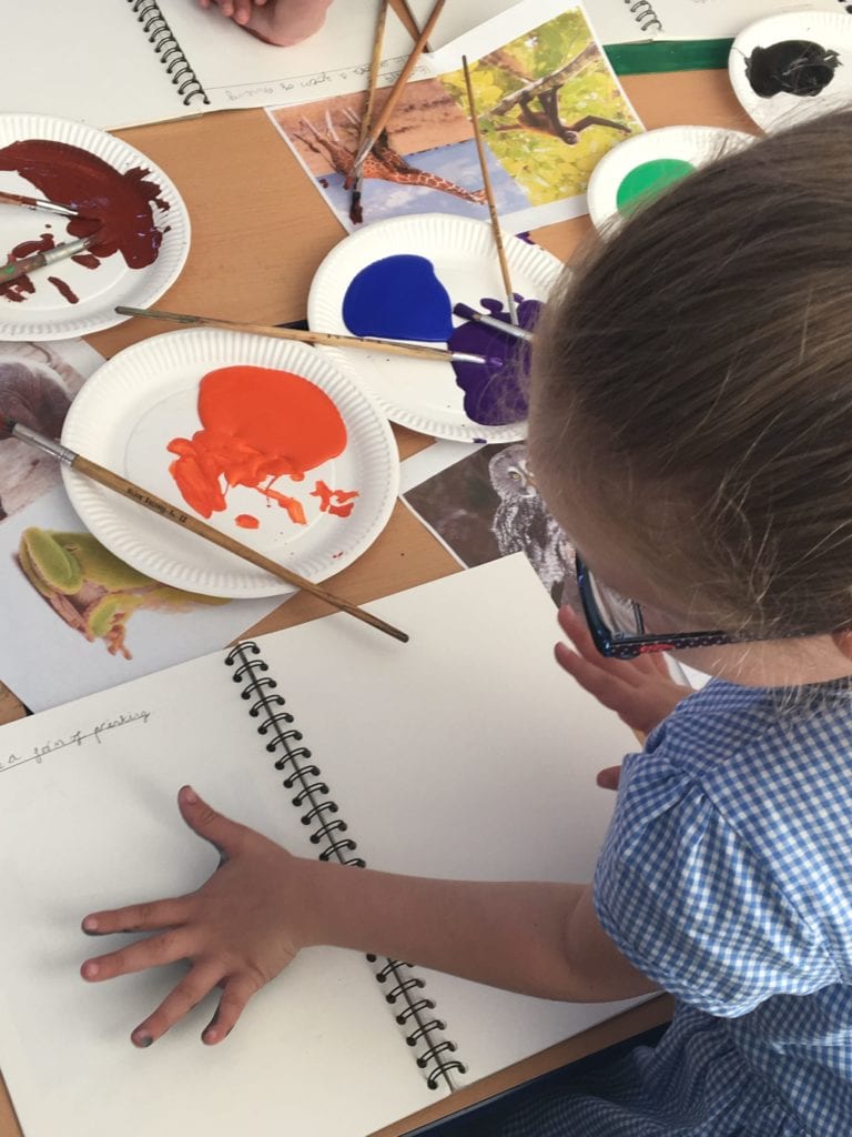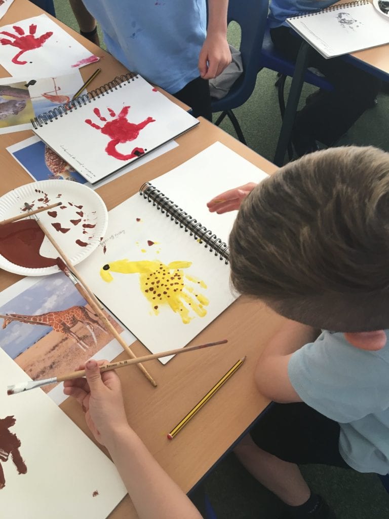 Children in class 3 have been using the technique of printing using different colours to create images of animals.