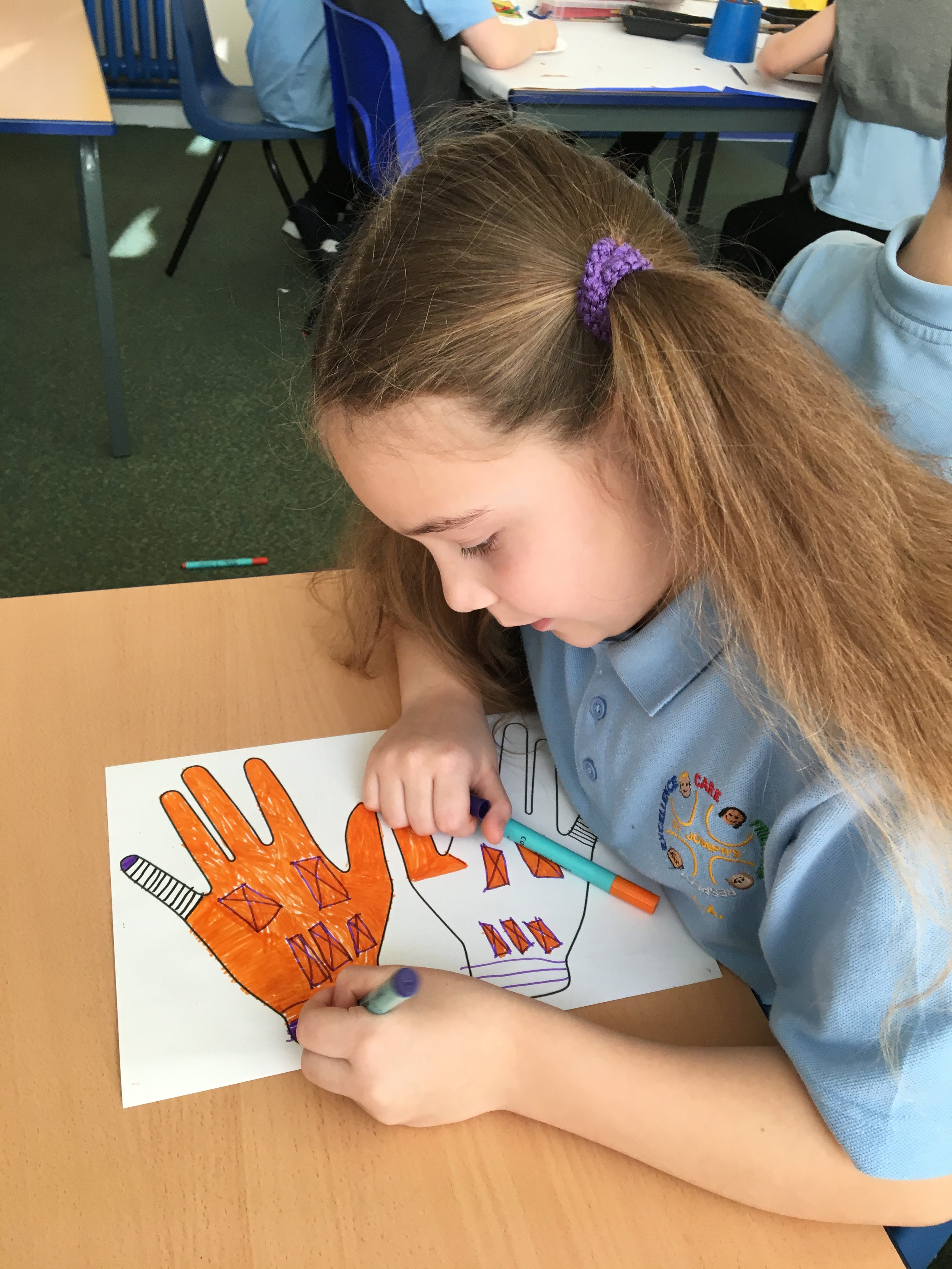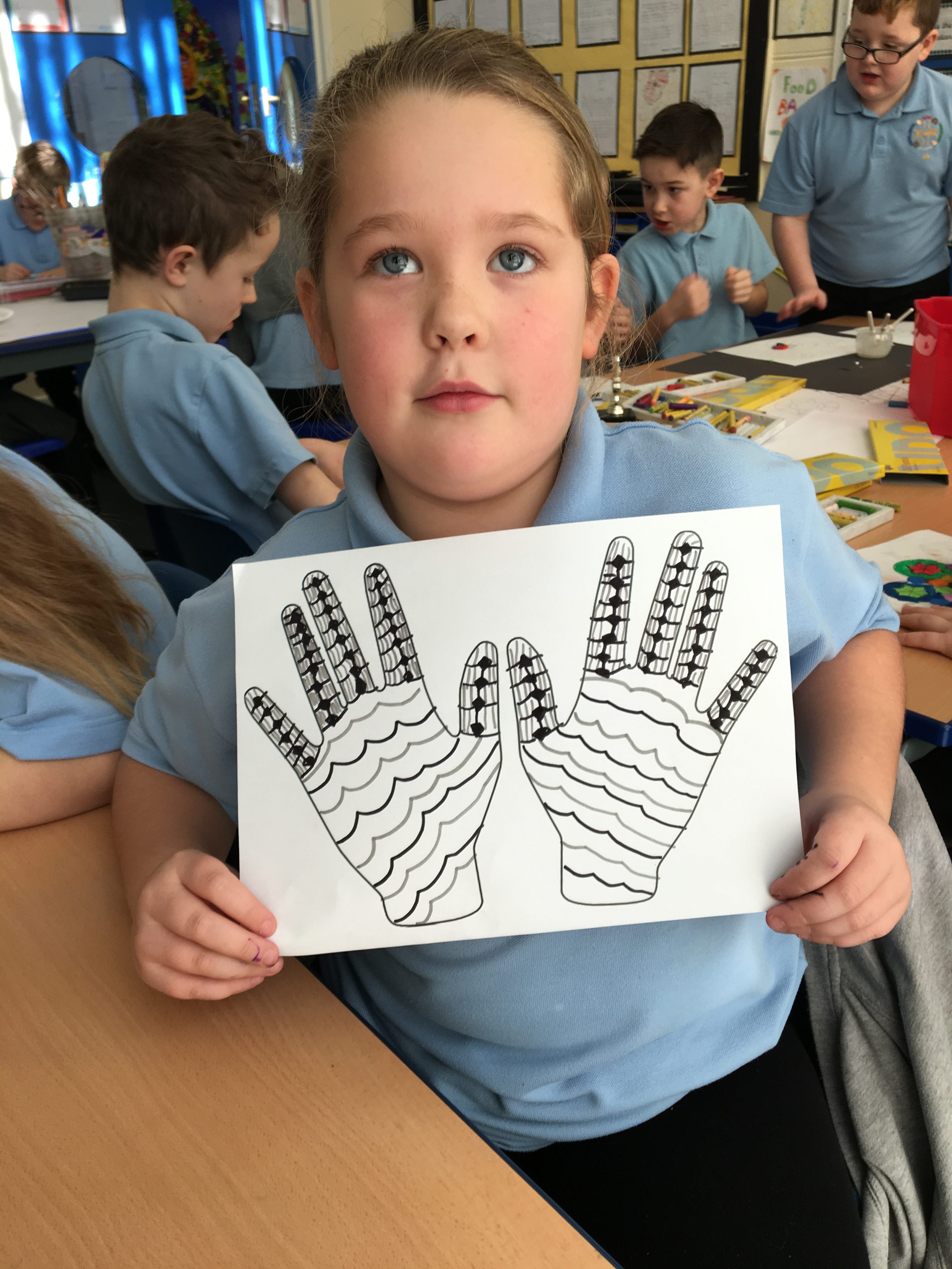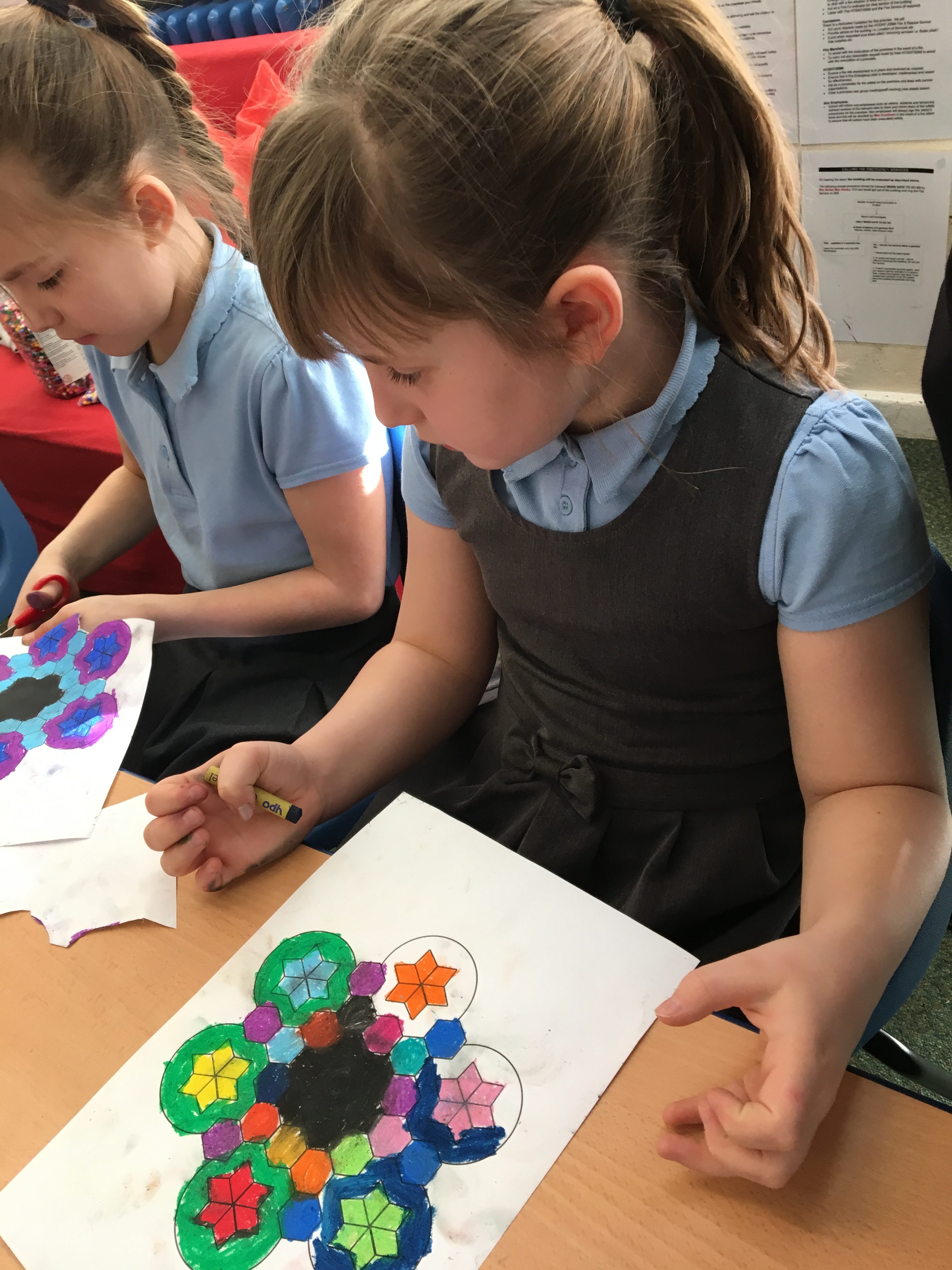 During Asia week Class 3 were looking at Indian art and applying techniques to their own art including Mehndi and rangoli patterns. Here are a few examples of their work.