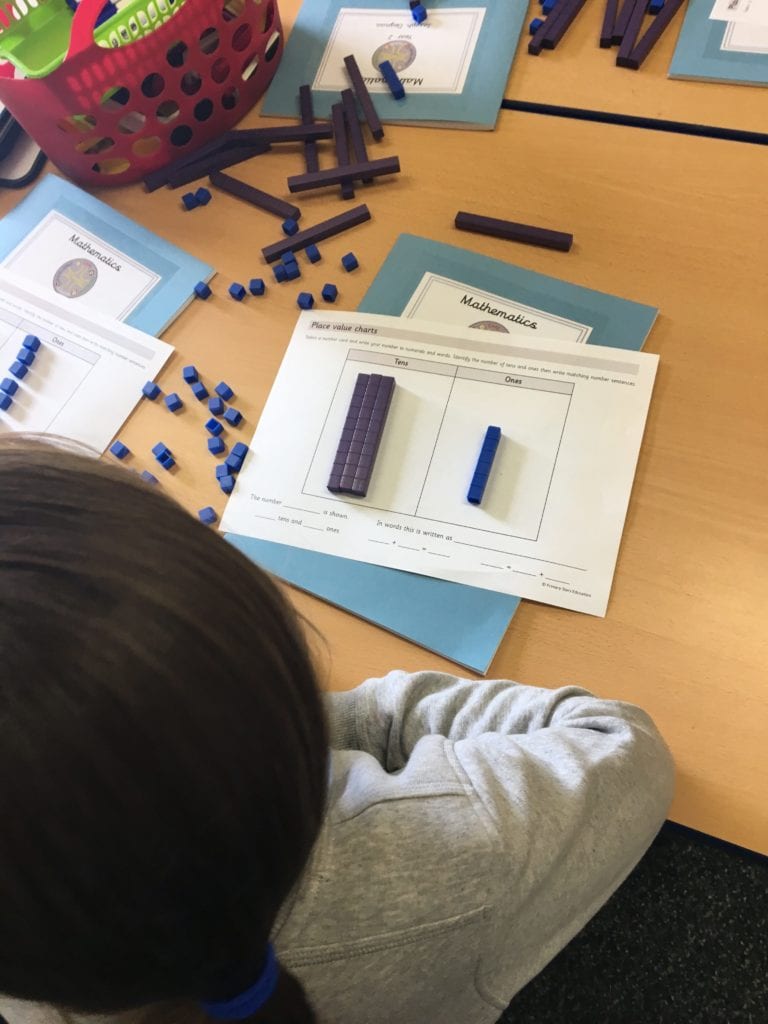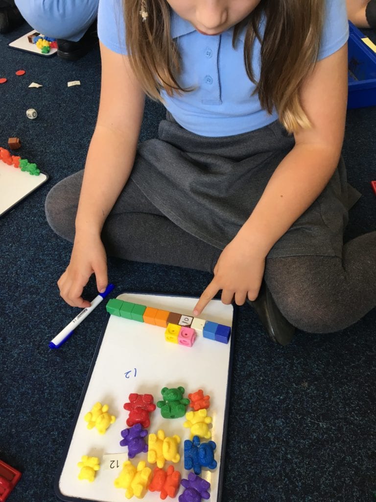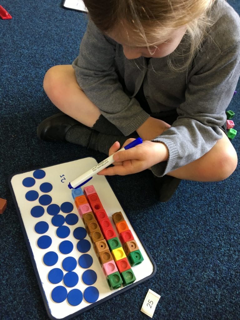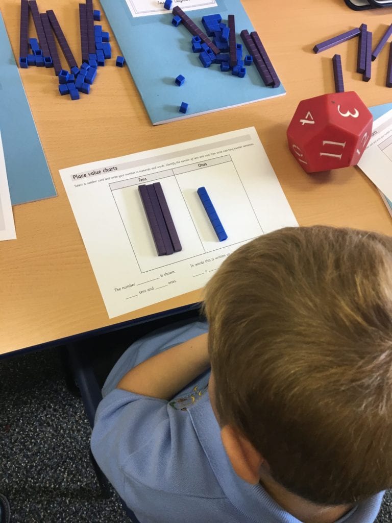 Children in class 2 have been learning about place value and completing lots of practical work using counters, cubes and base ten.