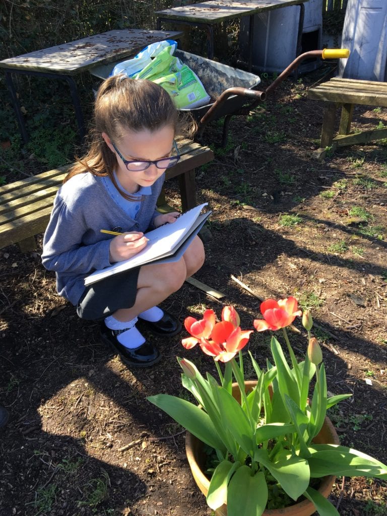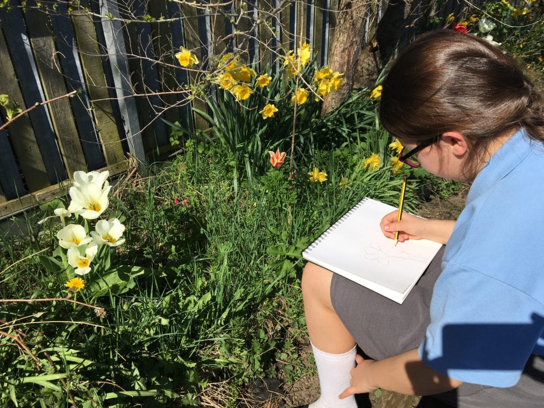 Children from class 4 went into the garden and completed some observational drawing.