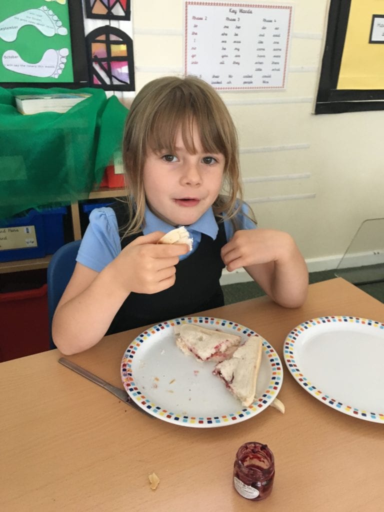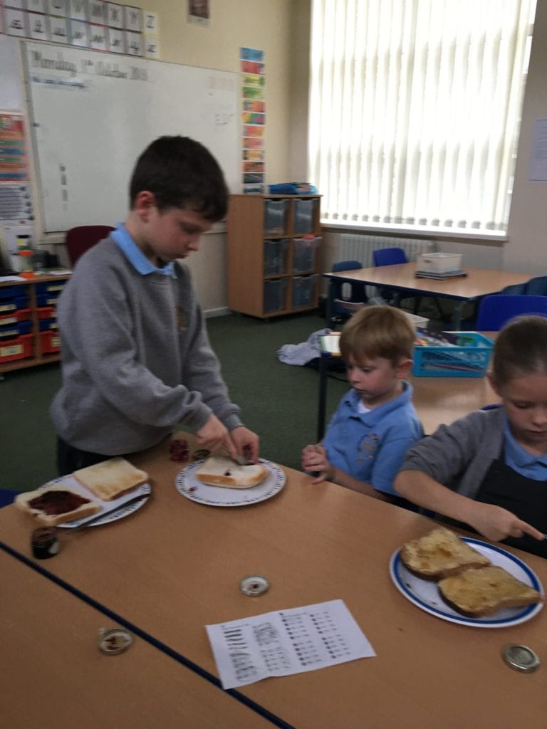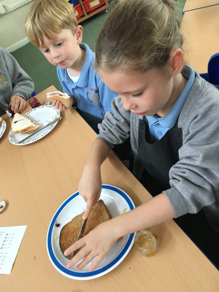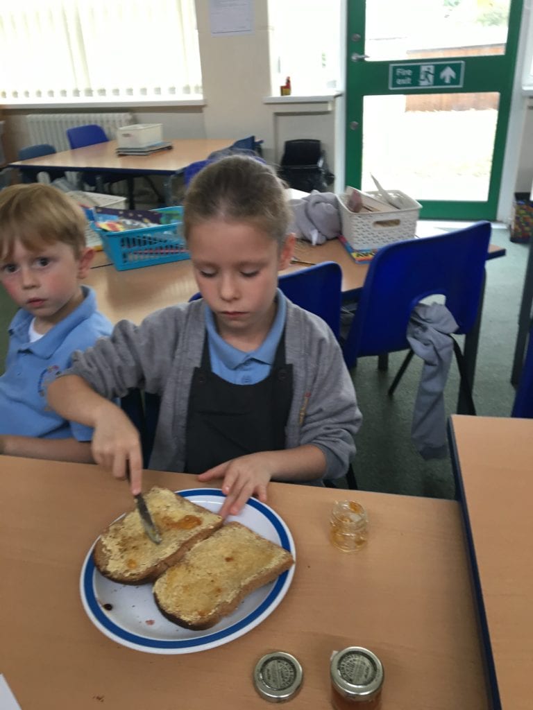The children have been learning how to make their own jam sandwiches.