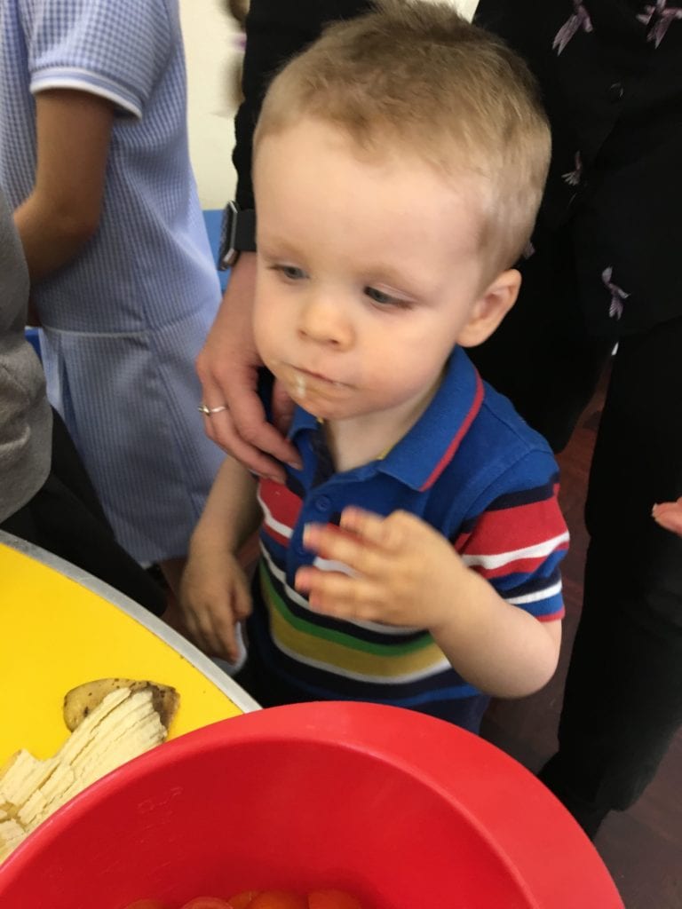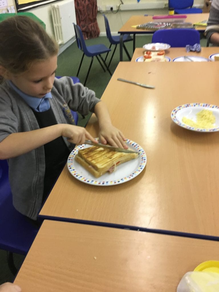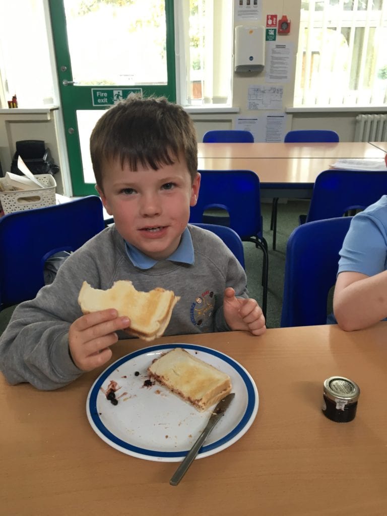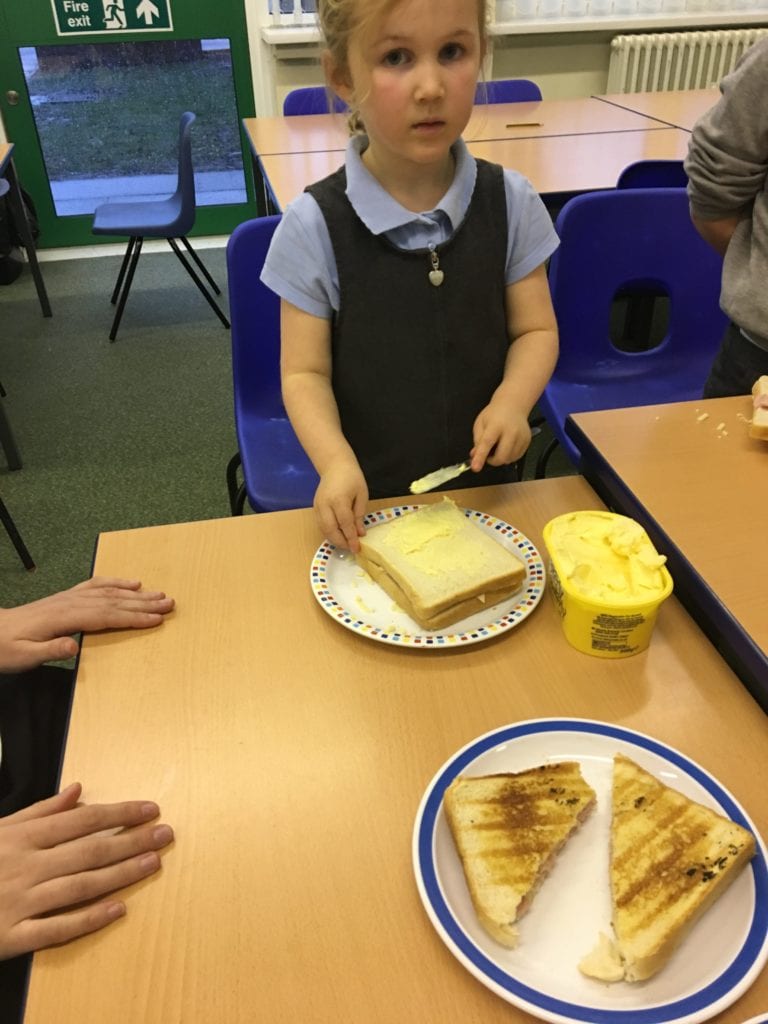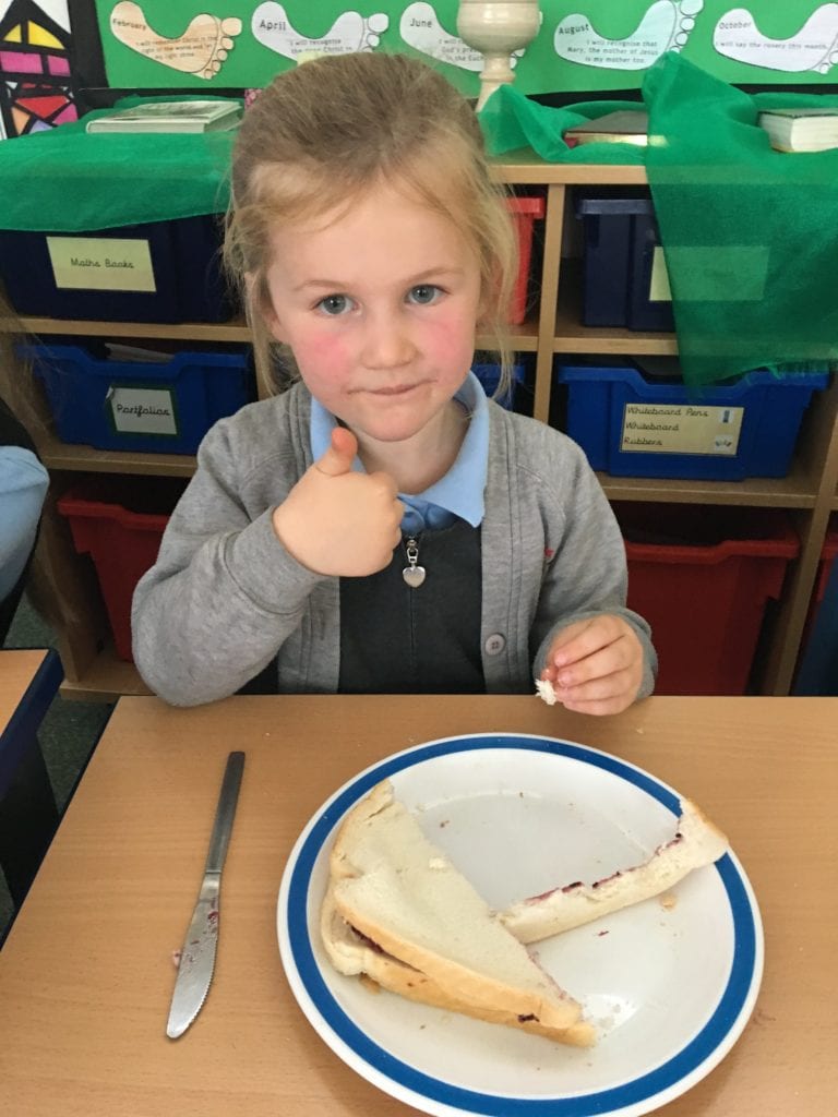 The children have been learning how to make their own jam sandwiches.