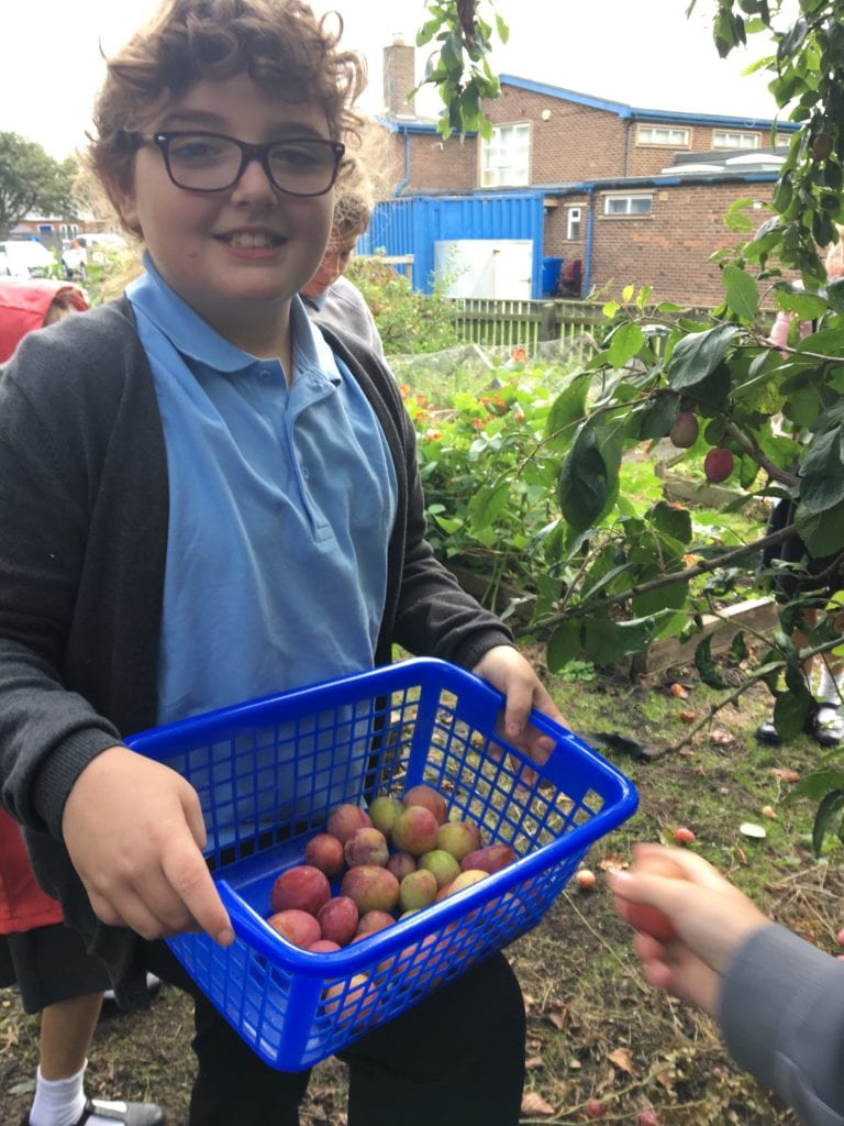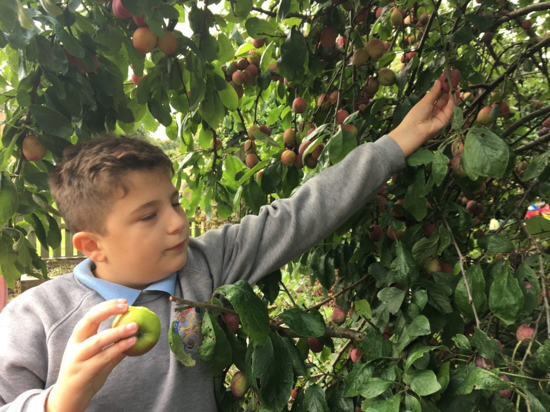 Children picked apples and pears from the garden and children from each class enjoyed them.