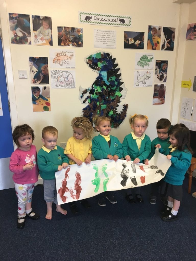 The 2 year olds have been learning about Dinosaurs. We have coloured Dinosaur pictures, made a giant Dinosaur collage, painted our own Dinosaurs, sorted Dinosaurs by colour and moved liked Dinosaurs outside!