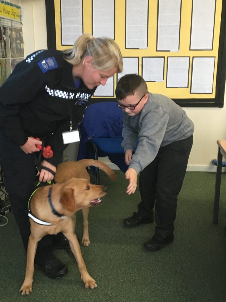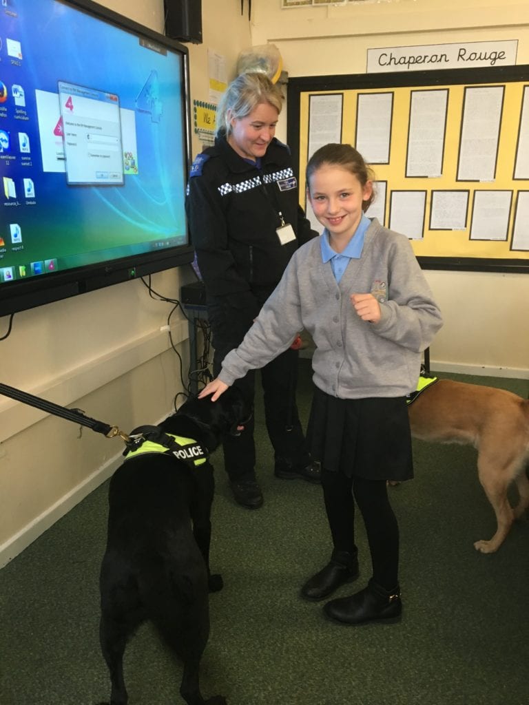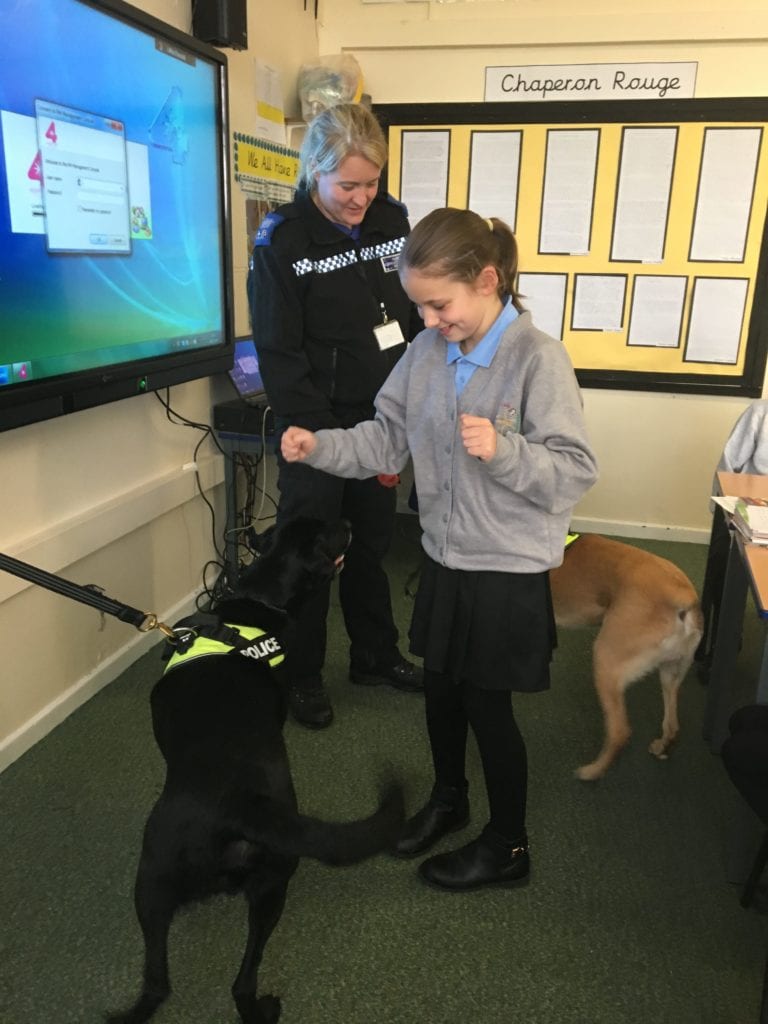 Ben and Jet visited the children in class 4 as part of their talks on safety by the police.