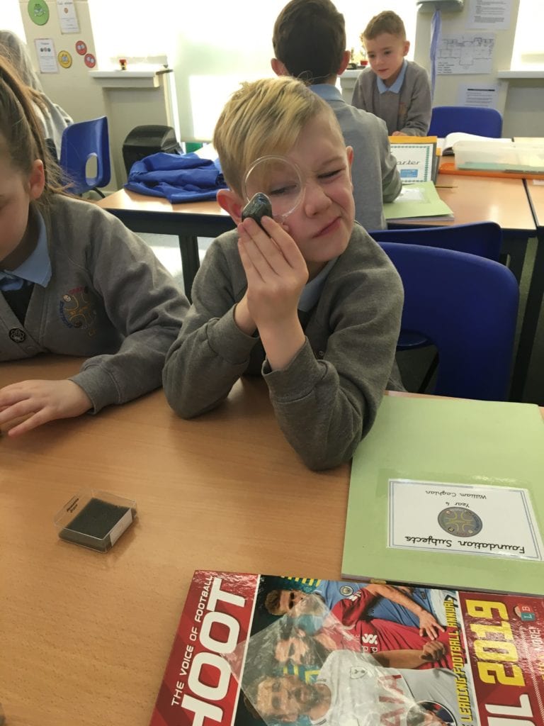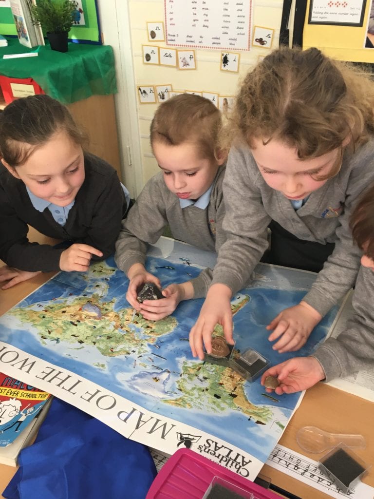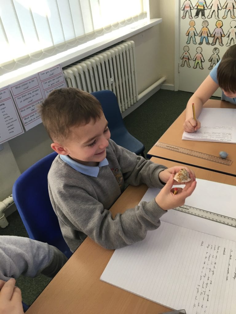 Class 3’s science topic is rocks. The children were really excited when they got the opportunity to explore a variety of rocks. They created their own descriptions and compared each of the rocks. We used the work to create a display in the classroom.