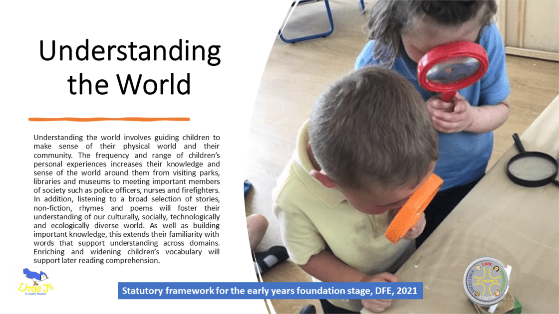 RE is incorporated into the area of Understanding the World, we follow the Come and See framework.